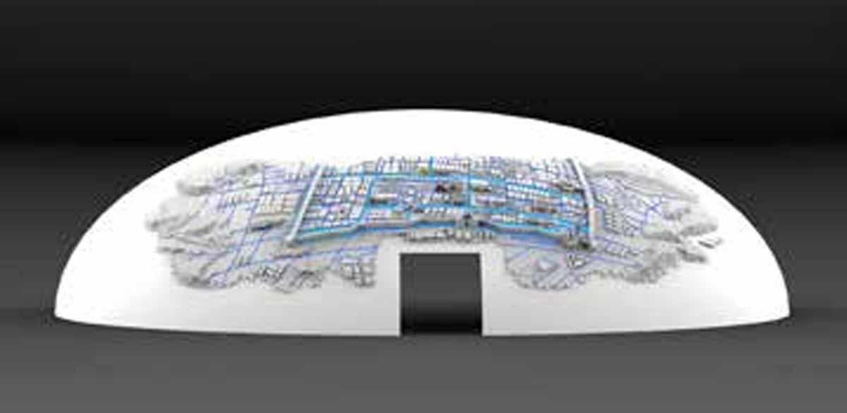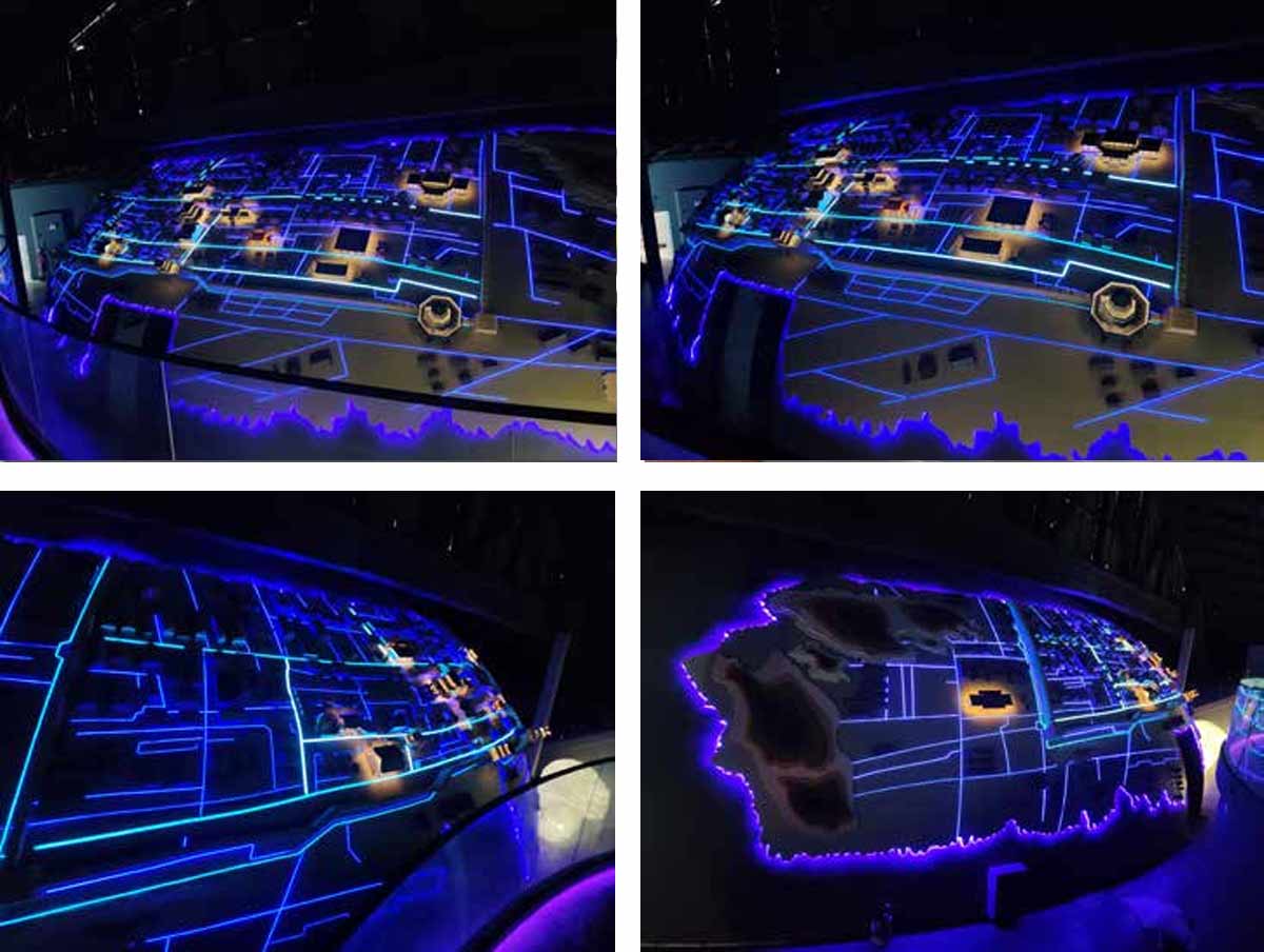 項目概況:項目位于平遙古城科技館球 幕影廳外墻上,通過路網分布、標志性 建筑等特色情況體現平遙古城整體布局 以及悠久歷史文化的大型沙盤